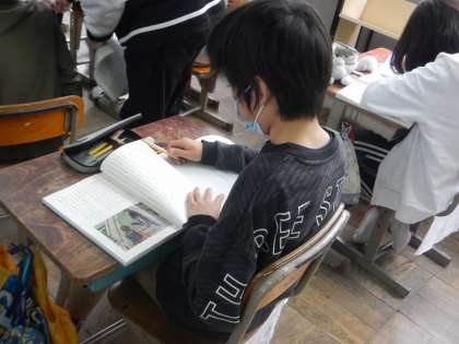 国語「帰り道」の学習です。2人の登場人物の視点から物語を読んで,2人の人物像を考えていきました。文章を何度も読み返し,根拠となる文を探したり,人物像にぴったりの言葉を探したりしました。