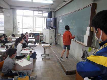 今日は,10分の1,100分の1,1000分の1にした数について考えていきました。整数や小数がどのように変わっていくのか,仕組みをみんなで考えていきました。