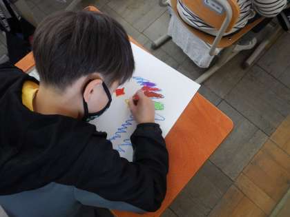 図工の学習で,世界に1つだけの「たまご」を描きました。この「たまご」から何が生まれるの!?を想像しながら,「たまご」の模様や色を考えてぬっていきました。みんなが描いた「たまご」から,どんなびっくり!!が生まれるのか,楽しみにしたいと思います。