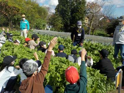 今回の畑の学校は,「追肥」をしました。大きく成長している大根に子どもたちもびっくりしていました。今回の「追肥」で,さらに大きくおいしい大根に育ってほしいと思います。収穫は12月の予定です。今から収穫が楽しみです。