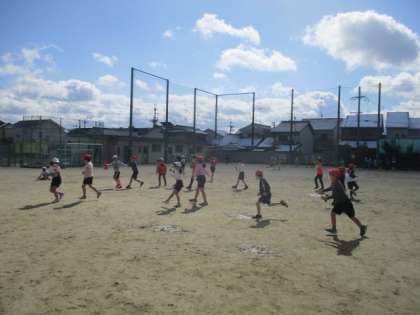 体育の授業でおにあそびをしました。国語の授業ででおにごっこについて学習を進めていたので,教科書に載っているおにごっこをみんなでやってみました。運動場を広く使ってやったので,体をたくさん動かして楽しく学習していました。