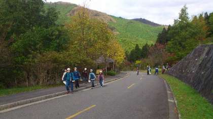 少し風がきついですが、みんな元気に回っています。別れ道ではどちらに行くかと班のメンバーで話し合ったり、力を合わせて謎解きをしたりしています。