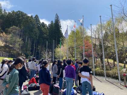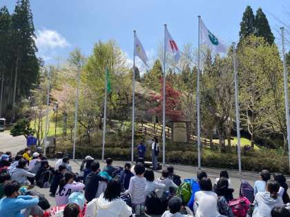 6年山の家5 校旗掲揚
