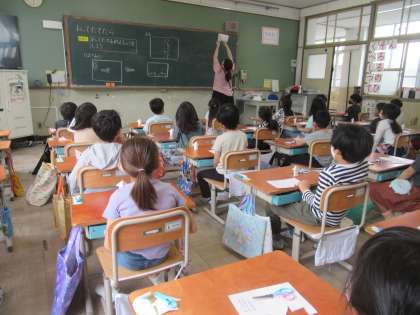 線にそって,紙を回して形を切りました。折って立てたらしっかり立ったので,子どもたちはとてもうれしそうでした。