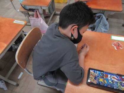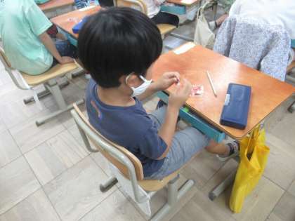 アサガオの種を観察しました。さわって,いろんな角度から見て,においでみて・・いろんな発見をしました。「石みたい」「キノコみたいな形」「何色の花が咲くのかなあ」など,いろいろなつぶやきの声が聞こえてきました。
