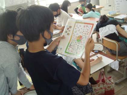 6年生の家庭科では毎日の生活を振り返り,朝食の役割について考える学習をしました。朝食の大切さが分かったところで,栄養のバランスがとれた朝食のメニューを考えました。朝に食べやすく,栄養のバランスもよいメニューを,表を見ながらグループで話し合ったり,自分で考えたりして作ることができました。