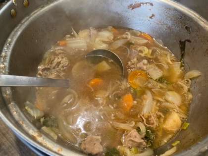 ぐつぐつと、美味しそうなすき焼き風煮の完成です。白ごはんもふんわり炊けました!