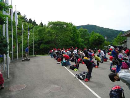 全ての活動が終了し,退所式をした後,バスで松尾小学校へ。「楽しかった!」「あと1泊したい!」などの声がたくさん聞かれました。