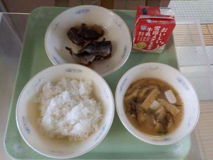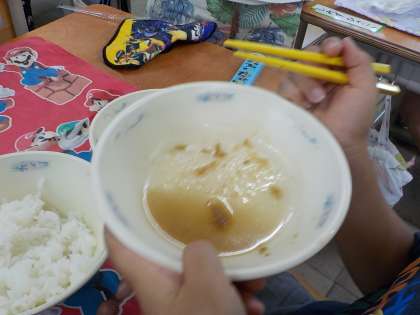 1年生ははじめて食べるにしんなすに少しドキドキした様子でしたが,1口食べてみると「おいしい!」「もっと食べる!」との声も聞こえてうれしく思いました☺