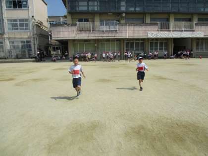 シャトルランを行いました。一生懸命走る姿や,周りで応援する子どもたちの姿がとても輝いていました。