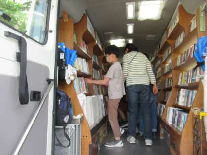 一か月に1回移動図書館「こじか号」がやってきます。毎月,本を探し,本を借りています。6月のこじか号でも,本を選び,借りました。こじか号の方にしっかりあいさつをしました。読みたい本をじっくり選びました。自分で選んだ本を読んで,読書を楽しみたいと思います。