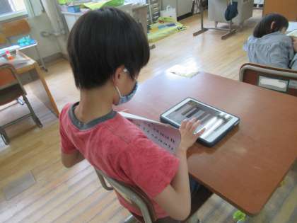 6くみ 音楽「アイパッドを使って」