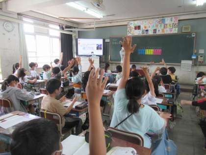 千億よりも大きな数について考えました。「一兆の位」を知り,どのように表すのか,そのように読むのか,一人で考えたりグループで考えたりしながら問題の答えを探しました。グループで話し合った後は自信満々。手の上がる数がうんと増えました。