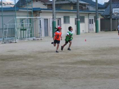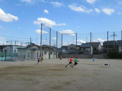 体育でリレーをしました。チームで力を合わせて走りました。一生懸命がんばりました。