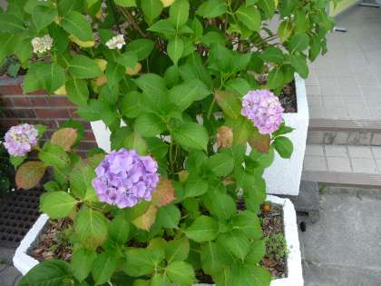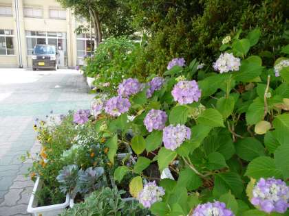 職員室前の花壇で,紫陽花が咲きはじめています。