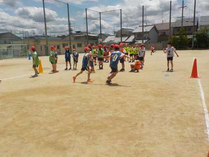 3年生になり,バトンパスをして初めてのリレーの学習をしています。最初は左手で受け取ることも難しかった様子ですが,練習を重ねるごとにスムーズに左手から右手に持ち返れるようになりました。また,リードもできるようになり,最後は白熱したレースを展開するまでになりました。
