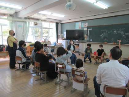 劇団の方が来られました。劇団の方と,元気に声を出したり,パフォーマンスを見て想像を広げたり・・。楽しく表現について学んだり,活動したりしました。