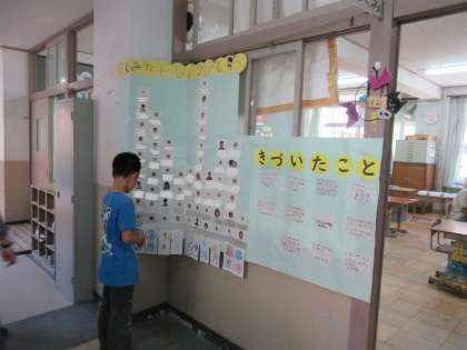 「校内の全教職員と6くみの子どもたちの誕生日を調べる」という活動が終わりました。みんなでがんばってつくった表は,6くみの教室の前に掲示しています。みんな,よくがんばりました。