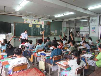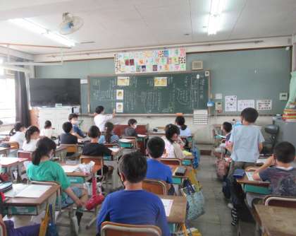 授業参観で道徳の学習をしました。お話を基に,主人公の行動のすばらしさを考えることを通して,正しいことを行ったときのすがすがしさに気づき,自分が正しいと判断したことは,すすんで行おうとする気持ちをもってほしいな,と考えました。子どもたちは,積極的に意見を発表し,頑張って学習をしました。