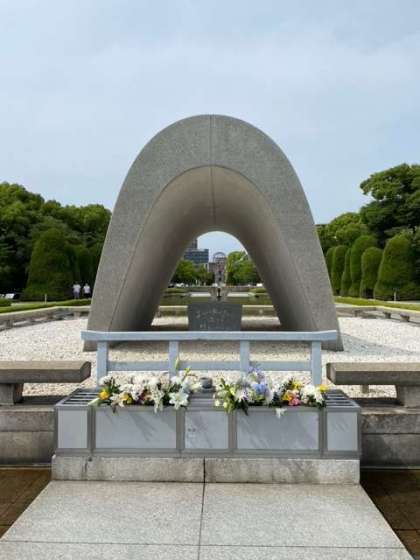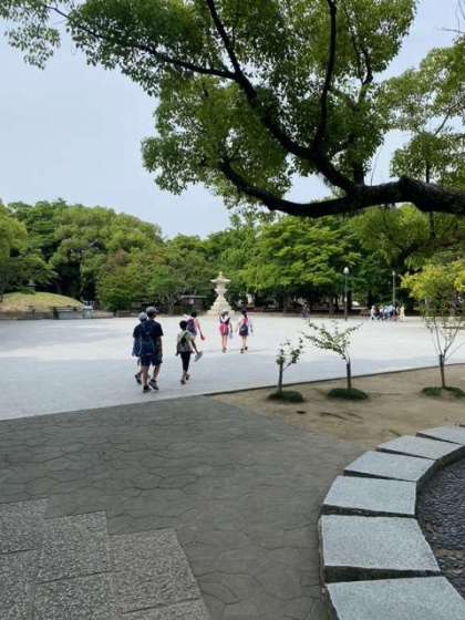 平和記念公園での学びを終え、バスに揺られて旅館へ向かっています。行程は予定通り、天気もいい感じです。