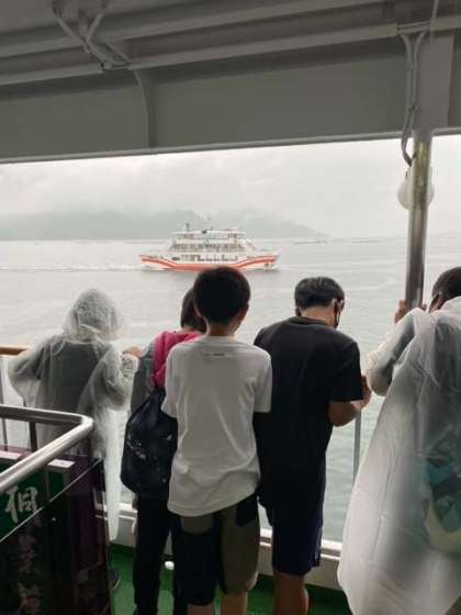 宮島はすぐそこですが、ワクワクの船旅の始まりです。