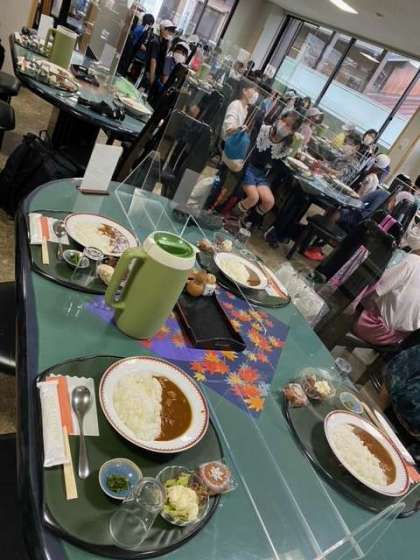 お昼ご飯は、おみやげものやさんのだいこん屋さんの二階でいただきます。