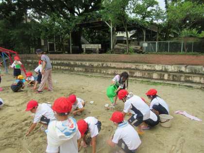 一生懸命活動する子どもたちの姿が見られました。みんな,一人一人がとても生き生きとした表情で,夢中で活動しました。上から見ると,とても立派な川が!地図のようです。みんな,がんばりました。