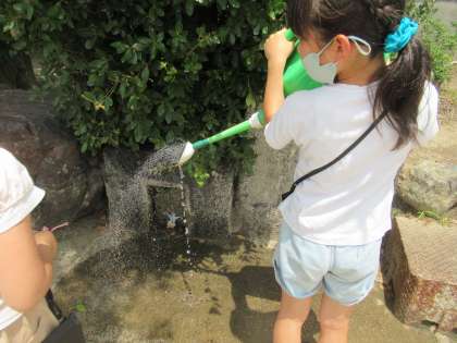 小さな自分を置き,遠くに行ったかと思うと,じょうろを持ってきました。小さな自分の前にじょうろの水を流し,写真を撮っていました。「なんで水を流しているの?」と聞くと,「雨が降っていて,雨宿りしているから。」という返事が返ってきました。立派な映像クリエーターです。友だちと協力して,素敵なアイデアの作品をつくっていました。