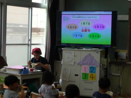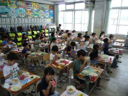 教室では、給食を食べながら七夕の由来についても学習しました。