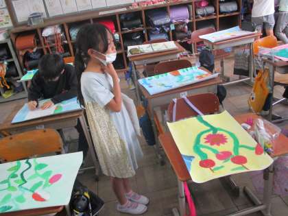 図画工作科では、まぼろしの花を描きました。どんな場所に咲いているかな?どんな大きさかな?など想像を膨らませながら、自分だけのまぼろしの花を描くことができました。個人懇談の際に教室の背面に掲示しておきますので、ぜひご覧ください。