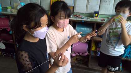 理科「音のふしぎ」の学習では,音の大きさによってものの震え方は変わるのか,音が伝わる時ものは震えているのかについて実験をして調べています。音が伝わる時ものは震えているのか確かめるために,糸電話を使って実験をしました。「相手の声がしっかり聞こえる」「糸が震えている感じがする」など,様々なことに気づいた様子でした。これからも実験や観察を通して,様々な発見をしていきたいと思います。