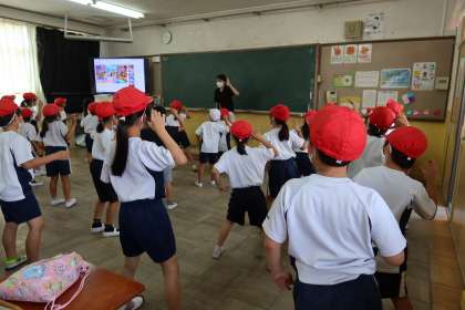 マツリンピックにむけて、表現運動の練習をしました。音楽に合わせて、しっかり体を動かせていました。