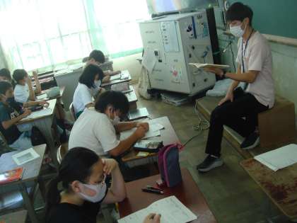 先生が読む物語を聞いて、思い浮かぶイメージや言葉から感じたことなどを絵にしていく学習をしています。物語に聞き入って「え〜!」「そういうことか!」などとつぶやきながら一生懸命メモをとっていました。それぞれが思い描いた、それぞれのお話の絵ができていくのが楽しみです。
