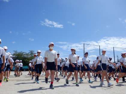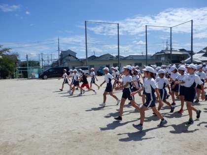 マツリンピック「集団行動」では、初めて運動場に出て練習を行いました。
