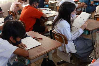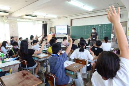 「やまなし」という作品を読んで、わからないと感じる表現がたくさんありました。そこで、宮沢賢治について知り、表現について考えることができるよう、宮沢賢治の生涯の年表を見たり、「イーハトーヴの夢」という文章を読んだりしました。子どもたちは、文章をとても熱心に読み、大事なところに線を引き考えることができました。