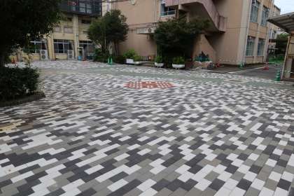 なわとび広場のインターロッキングの工事が、終わりに近づいているようです。とてもきれいになりました。子どもたちは「きれい!」と言って目を輝かせています。しかし、まだ、門のところなど調整が必要なところがあるようです。検査もこれからです。