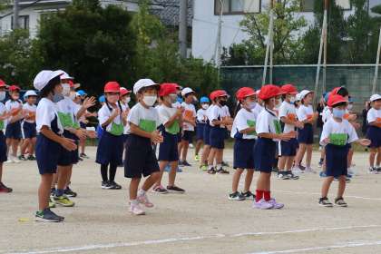 6年生が見本となって、前で踊ってくれています。