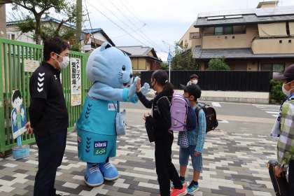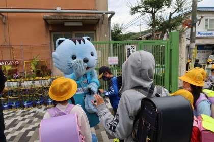 今日は、ハンナリーズから、ハンニャリンが学校に来てくれました。子どもたちは、びっくりしながら、とても笑顔でした。