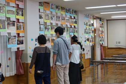 本校創立150周年を記念して、記念式典をふれあいサロンにて開催しております。朝から、地域や保護者の方々が見に来てくださっています。3年生が学校のよさを伝えるために撮った写真や、学校の歴史をまとめもの、地域の方の写真などを展示しているほか、学校の子どもたちの生き生きした姿を動画にまとめました。動画は随時再生しています。ぜひ、ご来校の上、見にきてください。