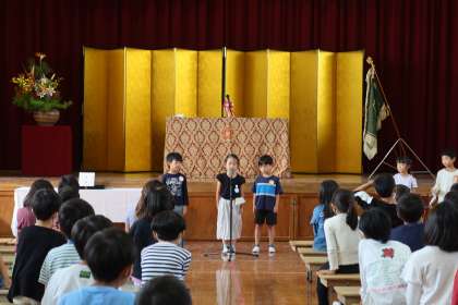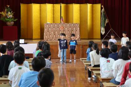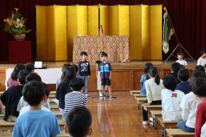 まつおっ子宣言1年生では、やる気いっぱい、元気いっぱい、勉強をがんばることや友だちにやさしくすることを宣言してくれました。しっかり発表できました。