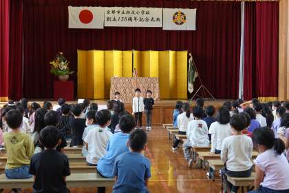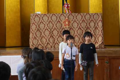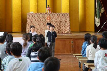 2年生は、自然や生き物がたくさん見られる松尾が好きなこと、地域の方が見守り、挨拶をしてくださることがうれしいことを話しました。自然を大切にし、友だちにやさしくして仲良くすること、地域の方にあいさつをすることを宣言しました。