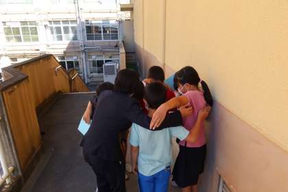 3年生は、総合的な学習で調べ、考えたことを式典で発表しました。発表の前、会場の体育館の舞台裏で、円陣を組み、発表への気合を入れいる姿がすてきでした。「がんばるぞ。松尾のよさを伝えるぞ。」という意気込みを確認し合いました。