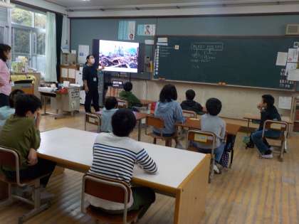 地震を想定しての避難訓練を行いました。あいにくの雨で運動場への避難はできませんでしたが、「お・は・し・も・て」の約束を確認したり、廊下に静かに並んだりする練習を行いました。