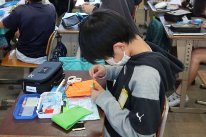 玉結びや玉どめ、なみぬいやかがりぬい、本返しぬい、半返しぬいなどの練習をしました。練習布で、実際に小物入れや、人形、ワッペンのようなものなど、好きなものをつくることができた様子が見られました。とても心をこめてつくっていました。次から、小物入れづくり本番です。みんな、上手につくることができそうです。