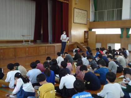 11月2日(水)に,造園業をされているPTA会長の荒木さんに働くことについて話をしていただきました。仕事に対する心構えはもちろん,学校で勉強することの大切さや,体調管理の重要性など,今の生活が将来につながることを教えていただきました。子どもたちにとって新たな発見の多い時間になりました。