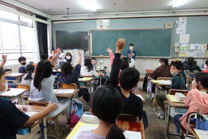 友だちに、できることやできないことをインタビューをして、クイズをつくりました。クラスのみんなにクイズで伝えるために、「She can 〜」「She can't 〜」の英文をつくりました。クイズの発表では、一つ一つのヒントに対して、クラスの子どもたちが誰のことなのか一生懸命考えていました。そして、答えを見事正解することが多く、さすが、クラスの仲間、と感心しました。
