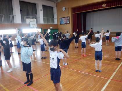 文化芸術授業「ようこそアーティスト」の学習では、「コンテンポラリーダンス」に挑戦しました。講師の先生方にダンスの基本的な動きを教えていただきました。バレエを基本とした動きに戸惑う子どもたちも見られましたが、踊っていくうちに心も体も温まり、楽しく活動することができました。