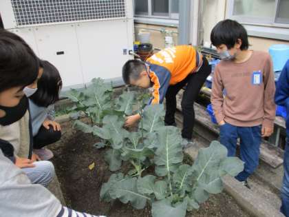 さつまいも収穫の後に植えたブロッコリーも,ぐんぐん葉を広げて大きくなってきています。