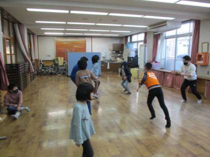 今日の朝の会は、ふれあいサロンで「ねこ・ねずみゲーム」をしました。