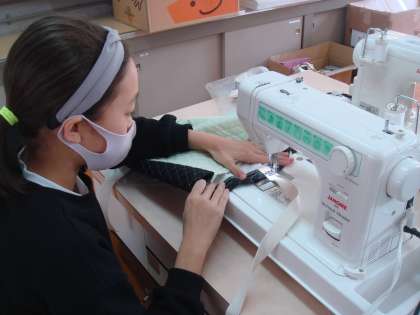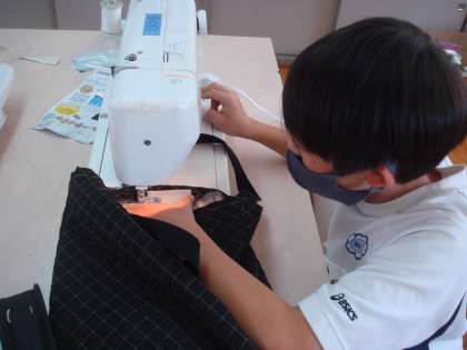 トートバッグ制作も終盤。持ち手の長さをそれぞれ目的に合わせて調節し、ミシンで縫っています。まっすぐ縫うことや返しぬいも上手にできるようになり、完成が楽しみです!